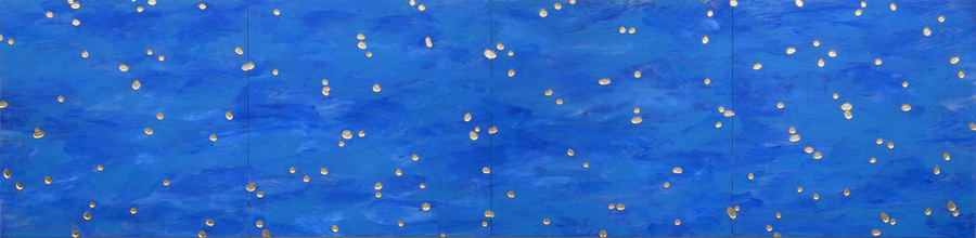 acrylic paint and gold leaf on plywood