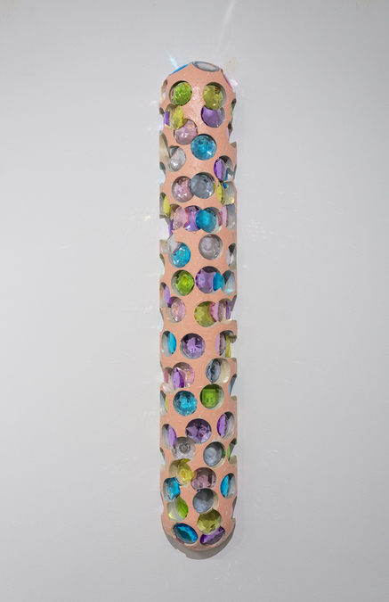 Acrylic paint and gems on wood column