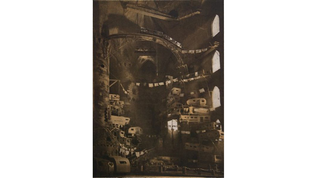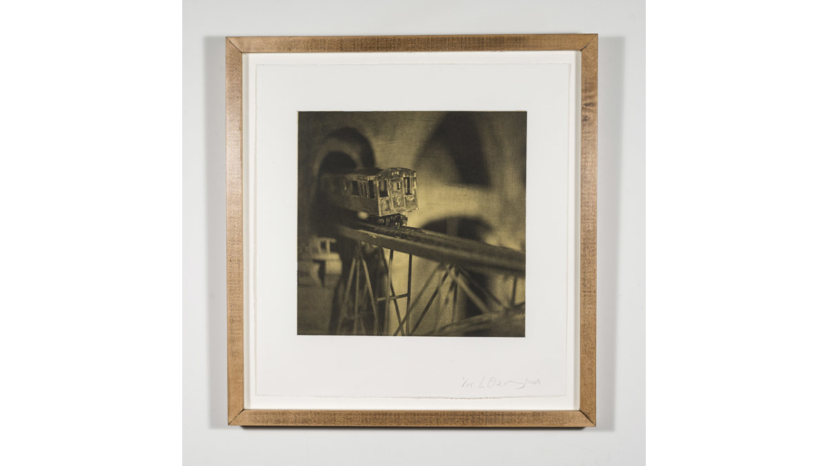 Lothar Osterburg makes photogravures of hand sculpted models of cities, subways, lighthouses, and sailboats among other things, staged in evocative settings. Built from memory with readily available materials, the models have a dreamlike quality which is enhanced by the placement of the camera within their world—the perspective is that of a person within a set—obscuring the actual size of the objects. The viewer, drawn into the scene, fills the gap created by the absence of people. The smallest models are photographed through a magnifying glass or with a macro lens. With this extremely short focal range, the scenes become ambiguous, mysterious, or even ominous, while somehow retaining the playful quality typical of Osterburg’s hand.