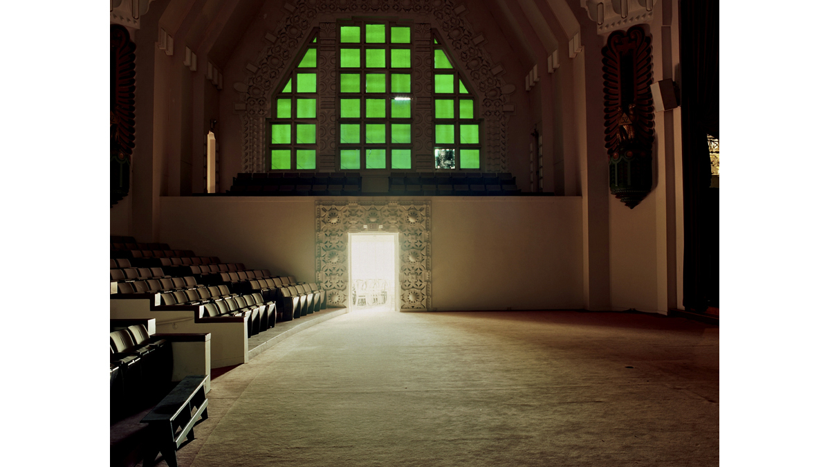 Katherine Newbegin’s photographs explore vacant and long unused places of leisure, travel and transitional occupancy. All of these spaces are deeply informed by the traces of the human activities that had once taken place there and now linger only in the remnants left behind. Newbegin photographs with film on a Pentax 6 x 7 medium-format camera using only natural lighting. This, along with her use of color and compositional intelligence, give her photographs an ethereal glow and a painterly quality. By leaving her camera lens open for minutes at a time, Newbegin is able to capture the remnants of human existence in extraordinary detail, exposing the patina left behind on these once treasured rooms.