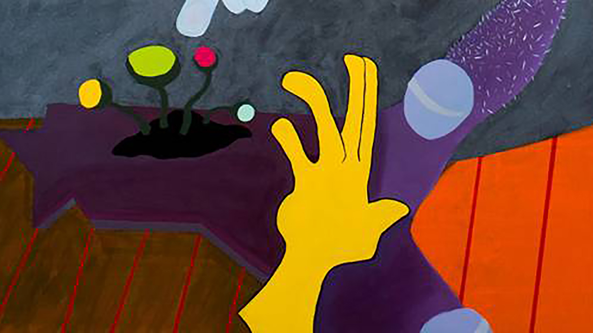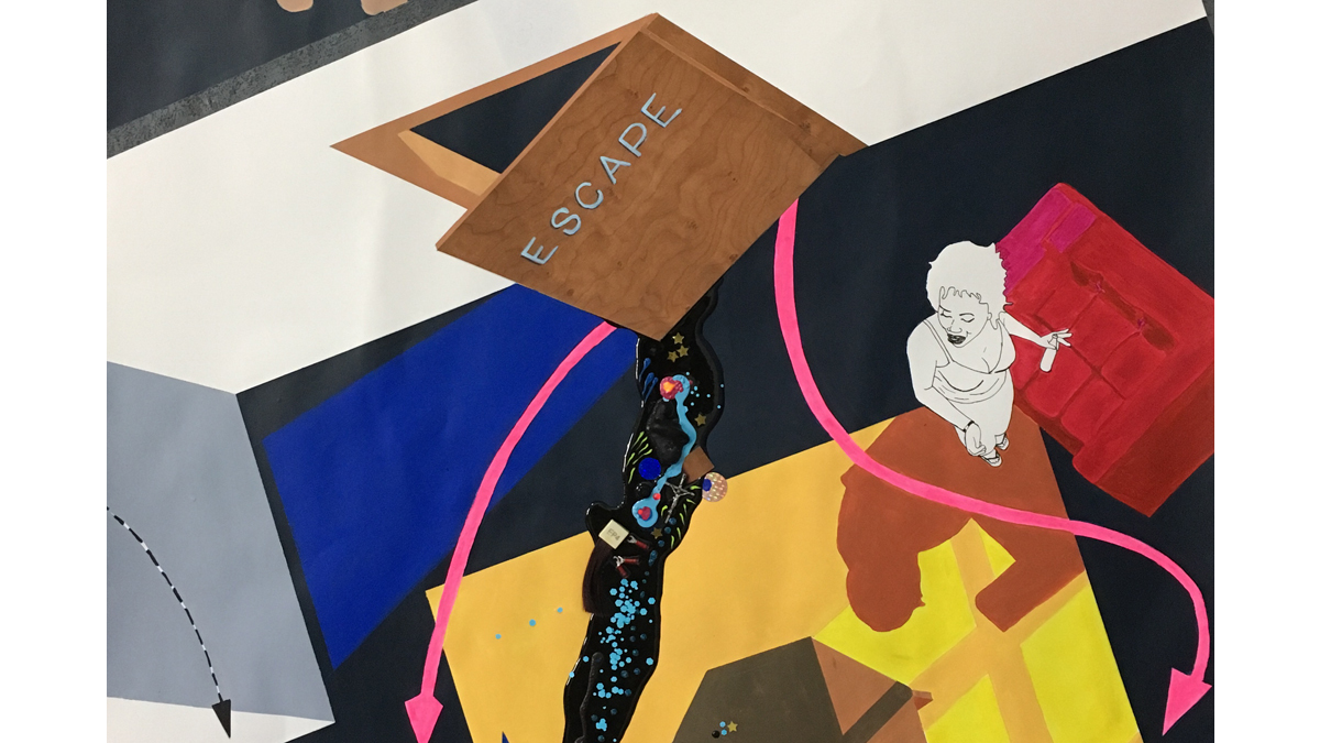 Alexandria Smith’s paintings weave together memory, autobiography and history. Smith’s mixed media works explore the “transformative girlhood experiences that shape the women we become and illuminate the complexities of Black identity.” Smith deconstructs images of the female body: legs, hands and pigtails, which become characters and landscapes in her paintings—in essence, a topography of her psyche. The abstract tableaux created are a fictional coming of age narrative that represents bodies in flux and explore issues of identity, gender, sexuality and psychology.