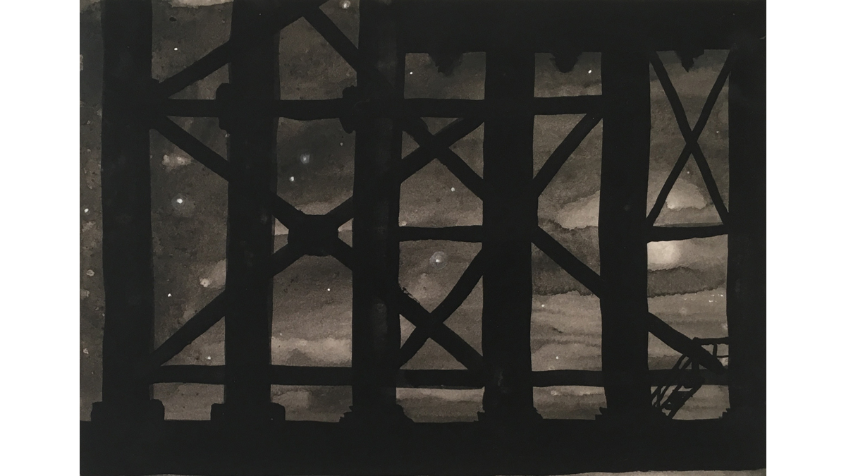 Donna Dennis, "Night Dock and Stars", 2016, gouache on paper, 7 x 10 inches