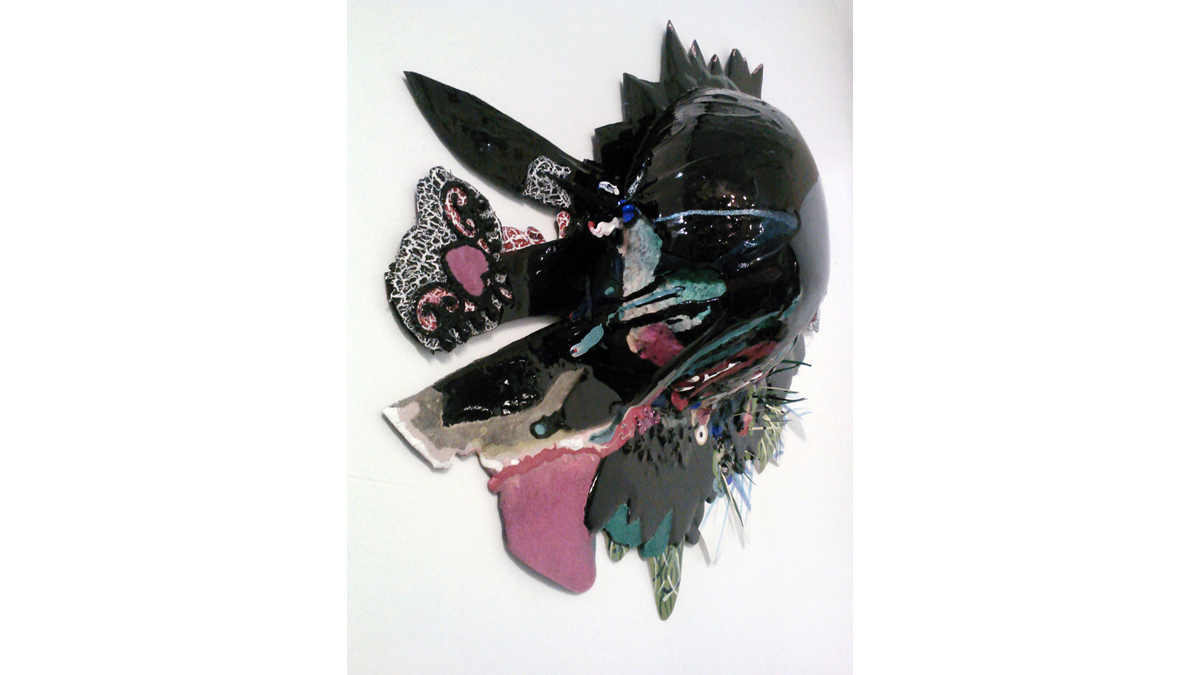 Nicole Awai, "Vista 3: Emerging Properties A", 2013, Acrylic paint, paper, nail polish, resin, vinyl, filter charcoal, nylon mesh on synthetic paper, 25 x 28 inches