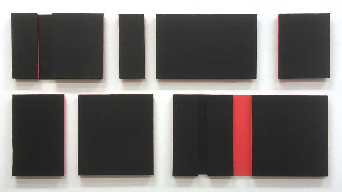 Tom Kotik, "Composition in Red", 2018, Felt, wood, paint, 20 x 37 3/4 x 1/2 inches