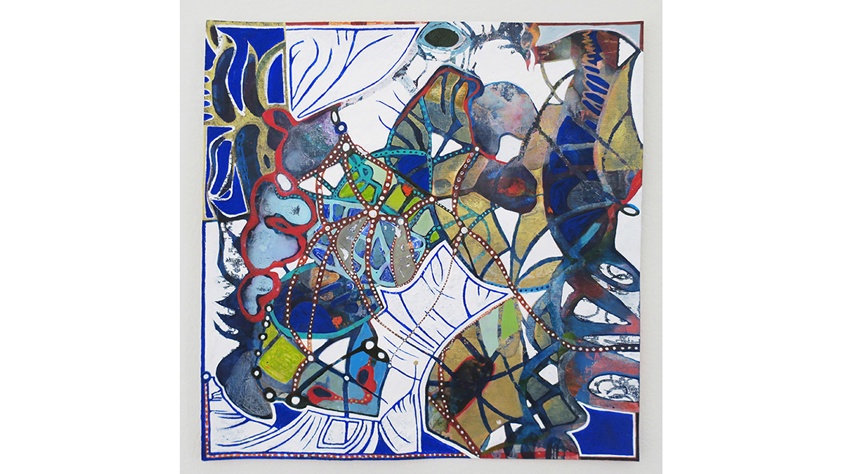 My recent paintings express the hums and beats of small worlds writ large. I build each painting through a form of layering, drawing on the detritus of my daily experiences. I'm interested in the preservation of stories and in harnessing moments of stasis as a counterpoint to the transient impermanence of this digital communication age. I take cues from the cacophany of city streets, its sounds and smells, as well as from minute details from the natural world, and pull it all together in an intuitive visual freestyle.