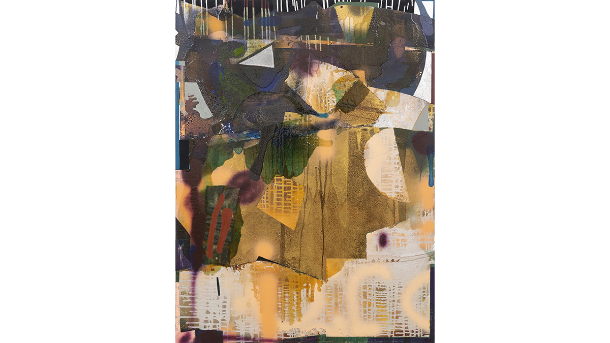 In the process of building layers artifacts are embedded, obscured and sometimes revisited in a viscose preserve of paint and shellac like prehistoric insects in amber. From memorializing a dead houseplant leaf, to excavating snippets from a buried layer of text, I follow the signs of what the painting needs. Liquid conduits and synapses connect and ooze through paint and water networks like blood cells and heartbeats. Delicate and brusque marks and sprays are applied in response to external and internal atmospheric rhythms. The challenge is to manifest this information visually. Like pages from a journal each artwork is an exercise in pushing paint around to articulate a time capsule on canvas.