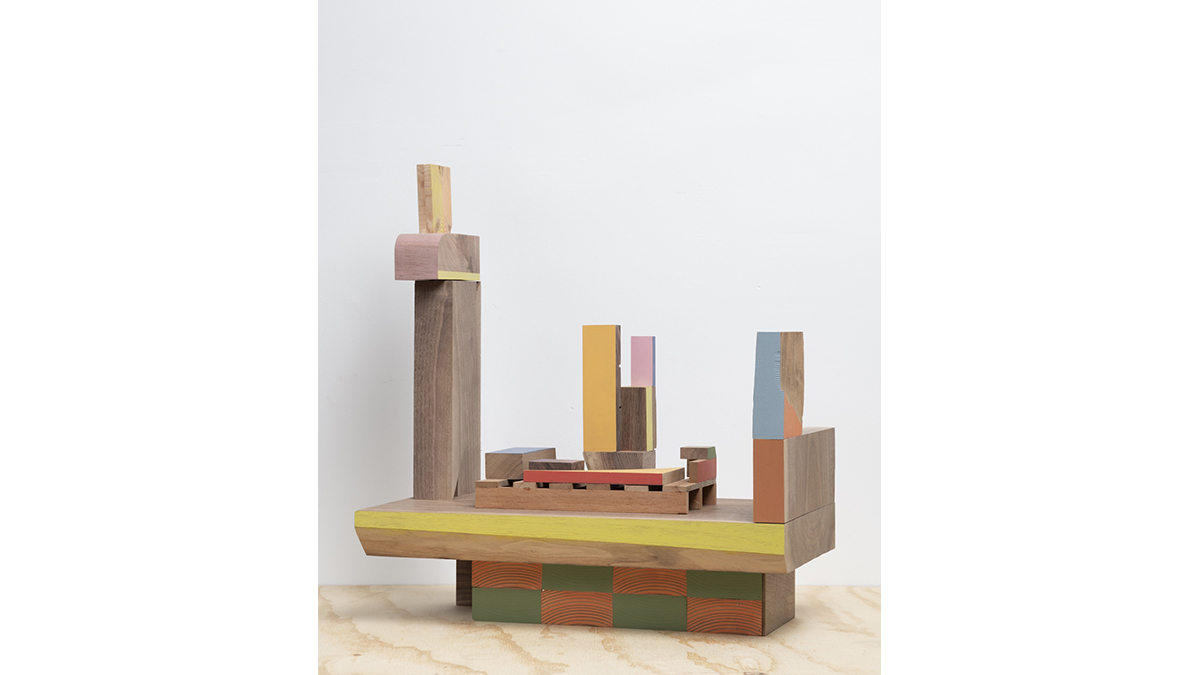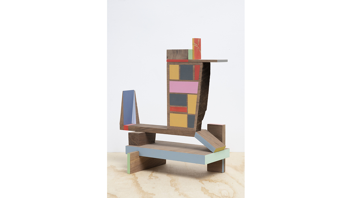 Jim Osman is known for his sculptures that explore structure, architecture, furniture, and space. Working almost solely with wood and paint—along with cast paint—he instinctively combines form and color to create dynamic 3-dimensional compositions with a strong emphasis on balance and a reflection on the process of making.
