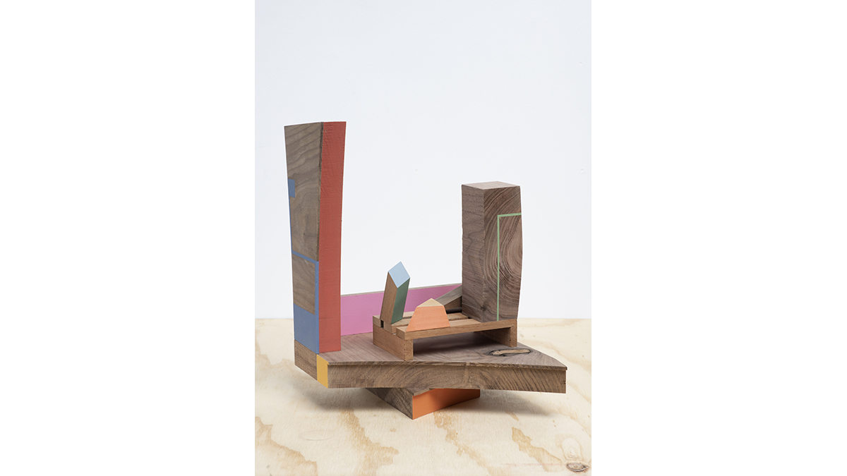 Jim Osman’s practice of combining elements of architecture, furniture making, form, line and color into minimal elegant sculptures, leads to various vistas created within the works. These distinct elements create a thoroughly thought-provoking conversation on space and form for the viewer to enter, engage with, and enjoy.