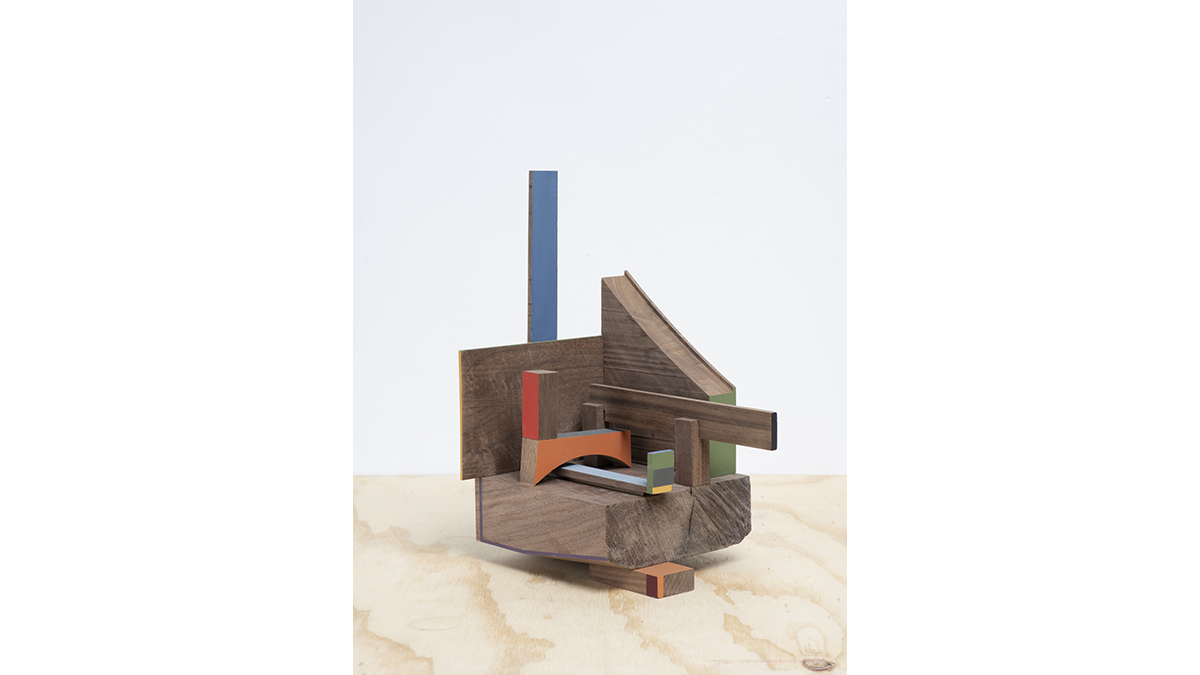 The works range from complex free-standing floor pieces to smaller and more intimate sculptures with simplified geometric contours that Osman refers to as Starts. The large works are positioned atop pedestals that Osman has created specifically for each piece and mimic the sculptures’ forms. The pieces excavate formal relationships of line and structure and invite contemplations on architecture, furniture and the materiality of wood. They invite a dialog with the viewer—and reward it—with an array of unique angles from which to view or enter the works.